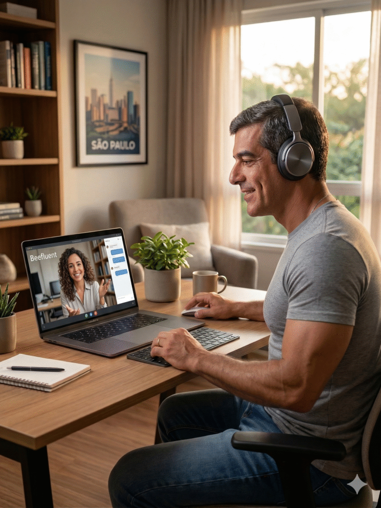 A Unyleya apresenta o curso de inglês da Beefluent — uma metodologia inovadora que combina tecnologia avançada com acompanhamento humano para acelerar sua fluência.